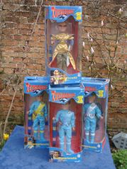 A complete set of Four Thunderbirds puppets in their original boxes and they are 12" tall. They are Scott, Virgil, Alan and The Evil Hood.